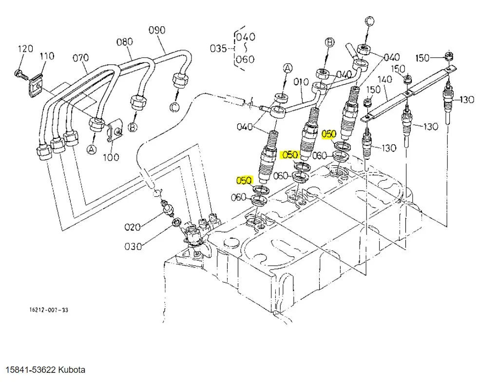 Ensure a tight, leak-proof seal with the Kubota gasket 15841-53622, engineered to meet factory specifications for durability and performance. This genuine gasket plays a crucial role in sealing the nozzle holder and glow plug area within the engine, preventing fuel and compression leaks that could compromise engine efficiency.