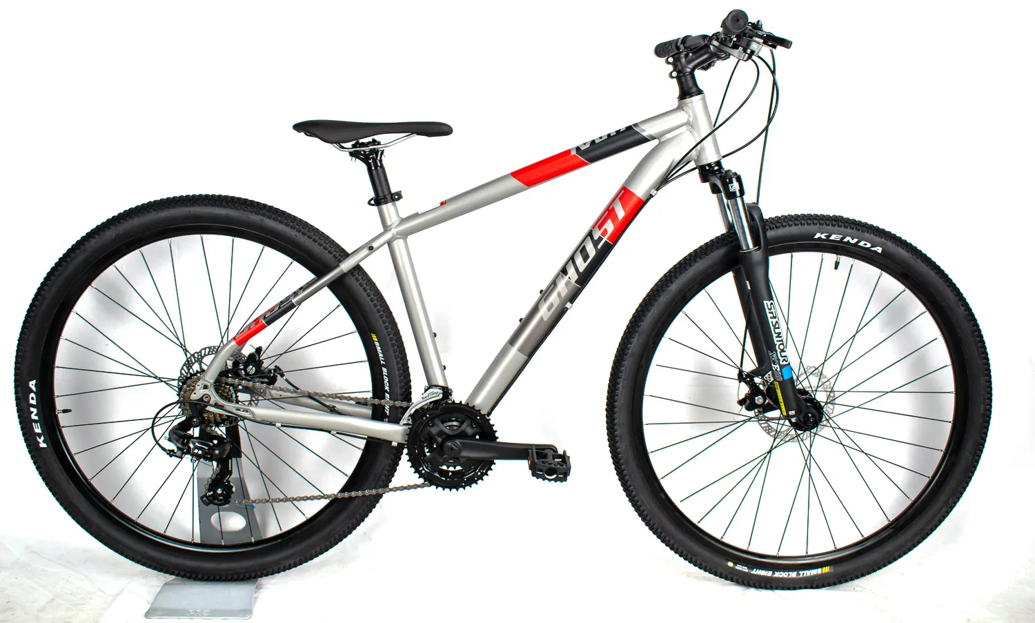 The 29-inch Kenda Small Block Eight tires provide excellent grip and rolling efficiency on various surfaces, from pavement to dirt trails. The Ghost 29R Alloy Double Wall rims add durability, making the bike a solid choice for beginners and occasional riders.