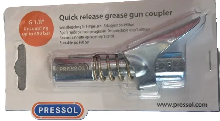 The G18697 Quick Release Grease Coupler is a compact, high-performance coupler designed to simplify and improve grease application. Featuring a 4-jaw fitting and unique lever mechanism, this coupler allows effortless attachment and removal from standard grease nipples, ensuring a clean and secure connection every time.