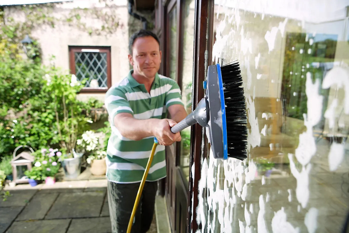 This high-quality cleaning brush features soft bristles that are tough on dirt but gentle on paintwork, windows, and trims. The brush head includes a built-in flow control for regulating water, giving you maximum control during cleaning.