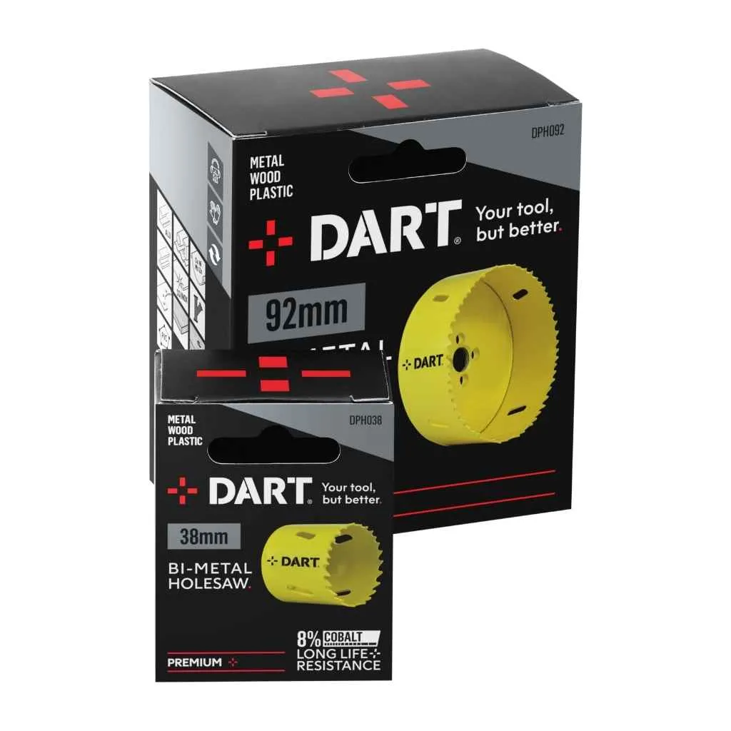 he DART 57mm Premium Holesaw - DXDPH057 is engineered for professionals who demand precision and durability in their cutting tools. With an 8% cobalt composition, this holesaw is built to withstand high temperatures and resist wear, ensuring a long product life even under tough conditions. The variable pitched teeth are precision set, providing an aggressive cutting action that effortlessly penetrates materials and clears swarf, resulting in faster, smoother cuts.