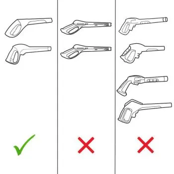 At older trigger guns this connection is done at the end of the trigger guns. Here, the fixation-clip is plugged in at the side of the trigger gun (see following picture). This replacement hose is also the correct replacement for those older trigger guns.