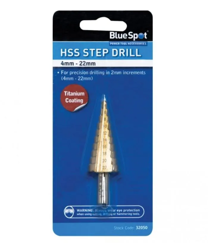 BlueSpot Step Drill 4-22mm – HSS Titanium Coated Precision Drill Bit