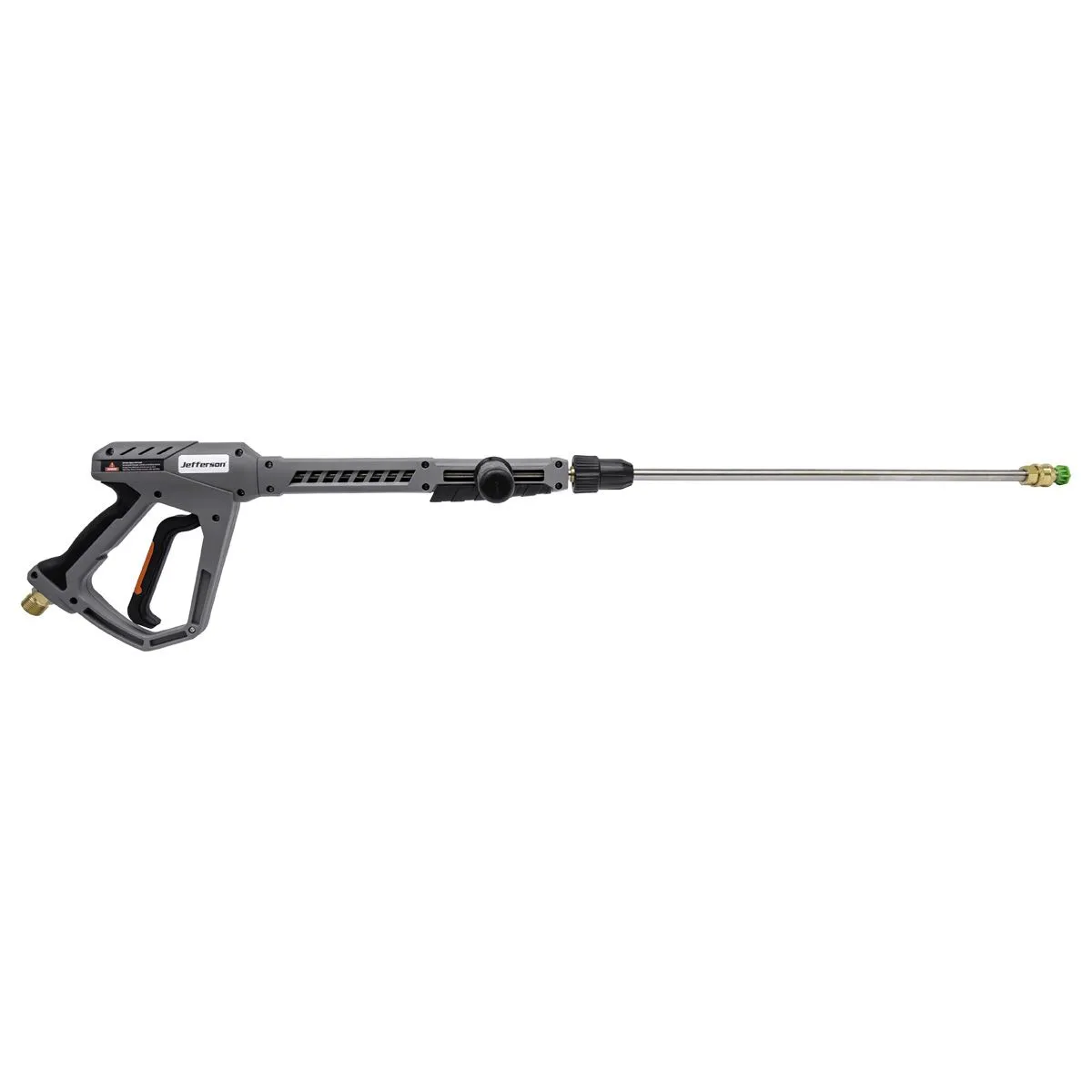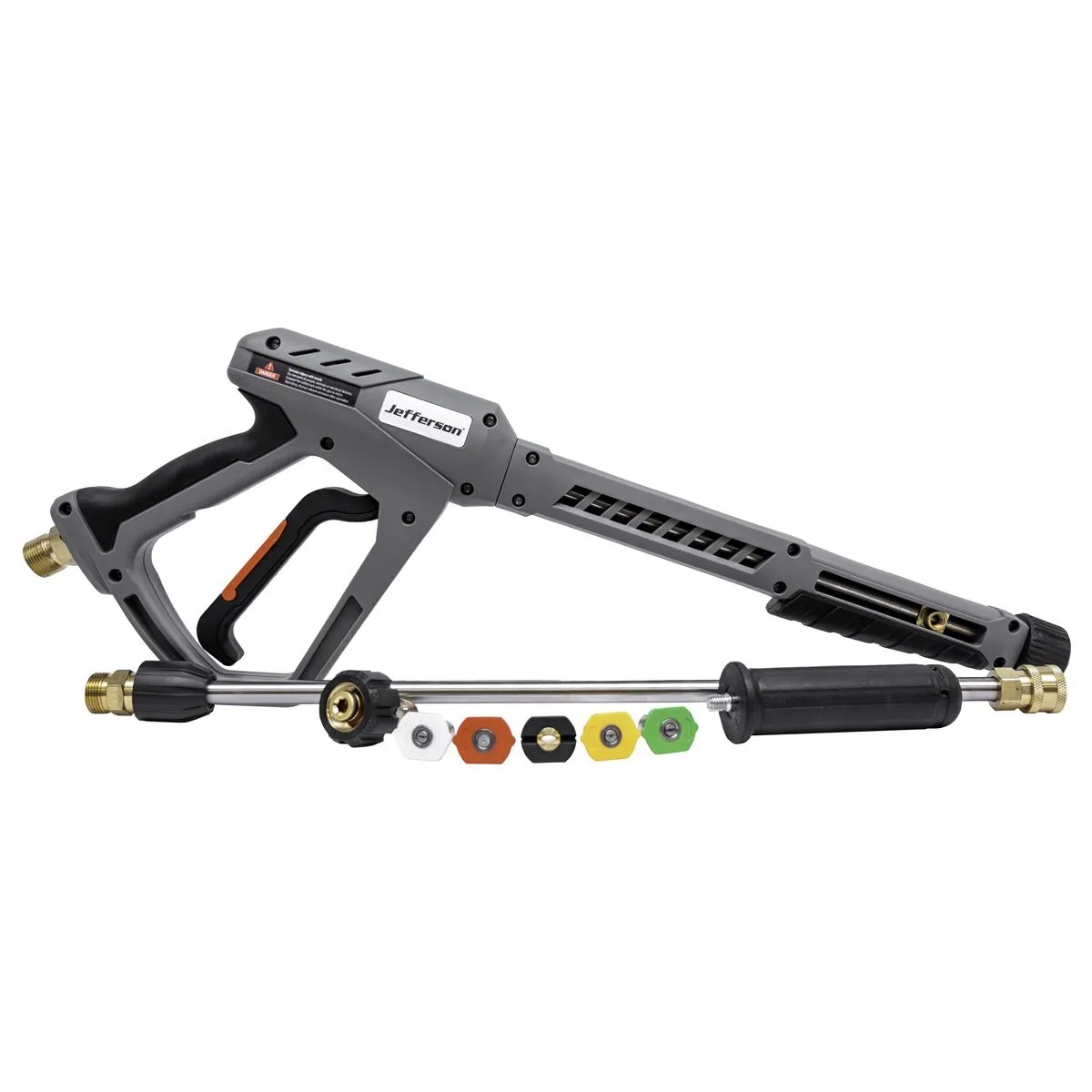 The Jefferson JEFWASHGLKIT Industrial Pressure Washer Gun & Lance Kit is a complete, heavy-duty solution designed for professional and industrial cleaning tasks. Built for durability and ease of use, it comes with a 20" stainless steel lance featuring a 1/4" quick connector for effortless nozzle changes.