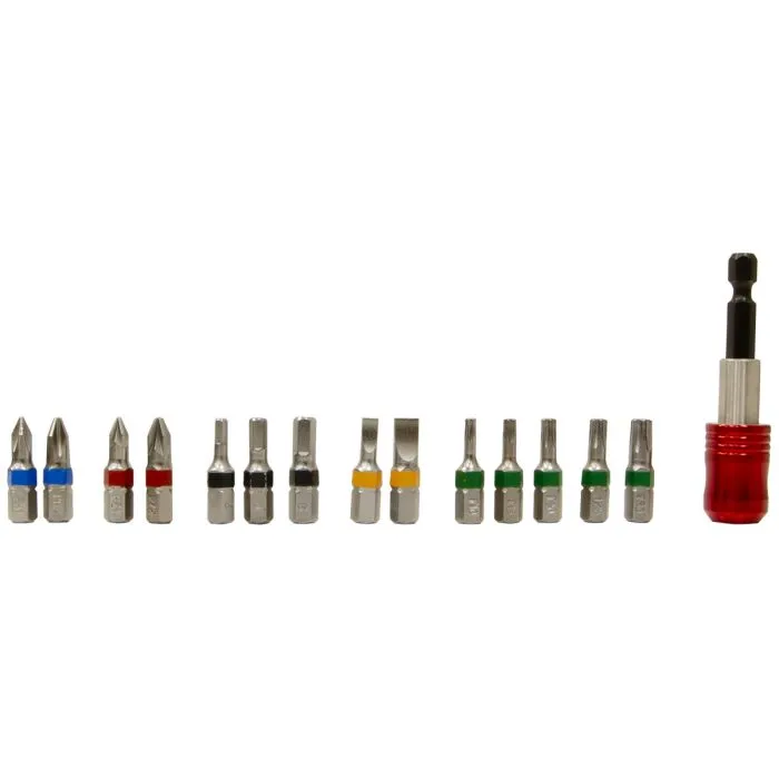 • Includes: 2 x Slotted: 4, 6mm, 3 x Hex: 3, 4, 5mm, 2 x Phillips: #1, #2, 2 x Pozi: #1, #2, 5 x TRX-Star: T10, T15, T20, T25, T30, 1 x 65mm quick release bit holder