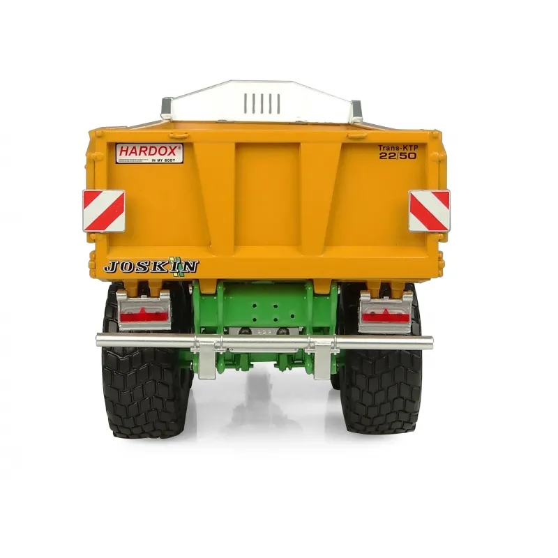 This highly accurate die-cast model of the Joskin Trans-KTP 22/50 trailer captures the rugged functionality of the full-size agricultural dump trailer. Crafted by Universal Hobbies, this model is designed with collectors in mind, offering precise details and high build quality in a compact 1:32 scale.
