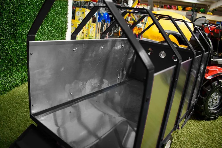 This Killbran Livestock Trailer Black can transport all your cattle on the back of your rolly tractor or other pedal tractors. The back folds down also. All metal frame. Ram assisted back loading door. Attach to all Rolly Tractors. Ideal gift to young farming enthusiasts. This livestock trailer is an excellent addition to their Rolly tractor.