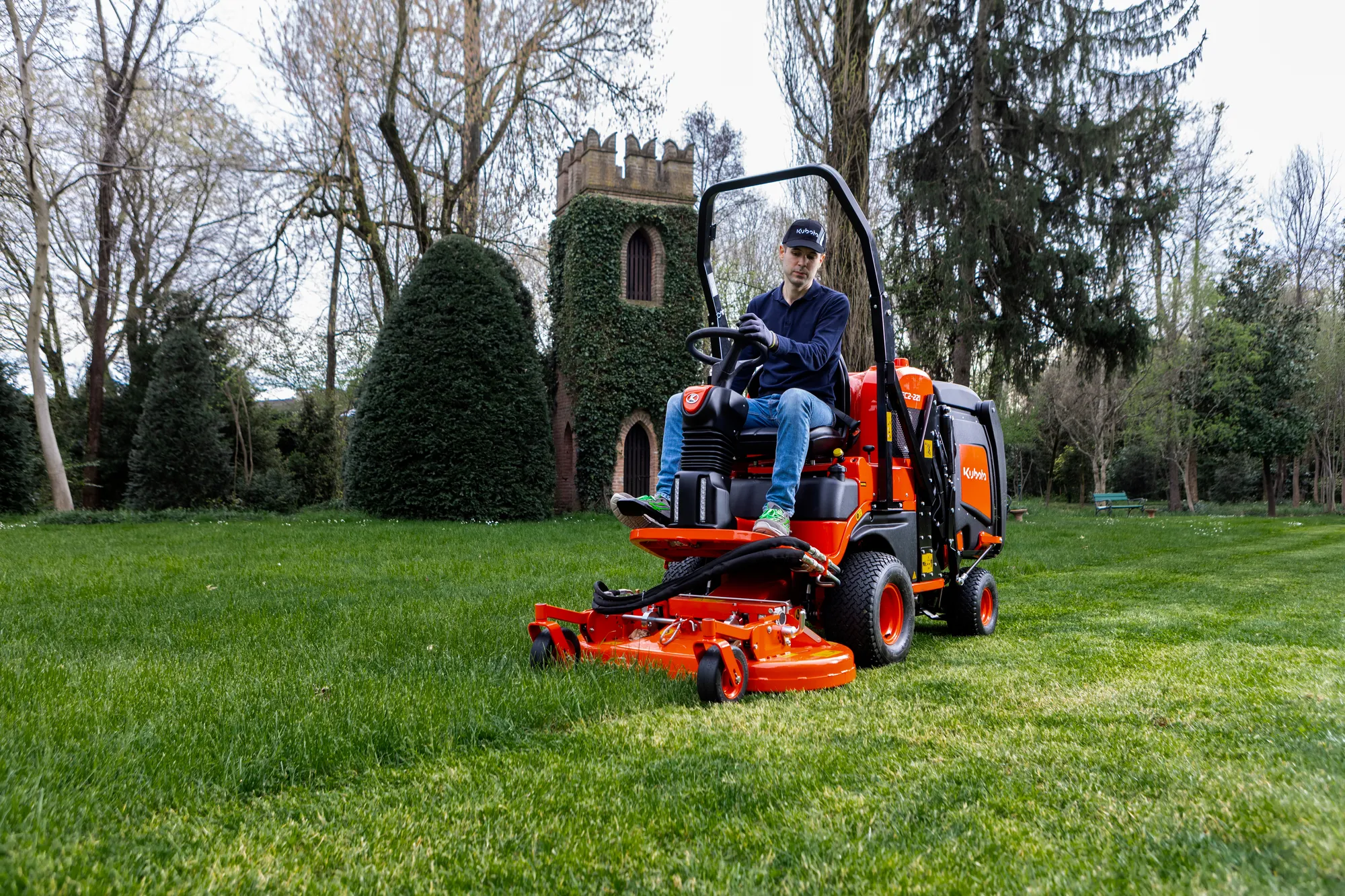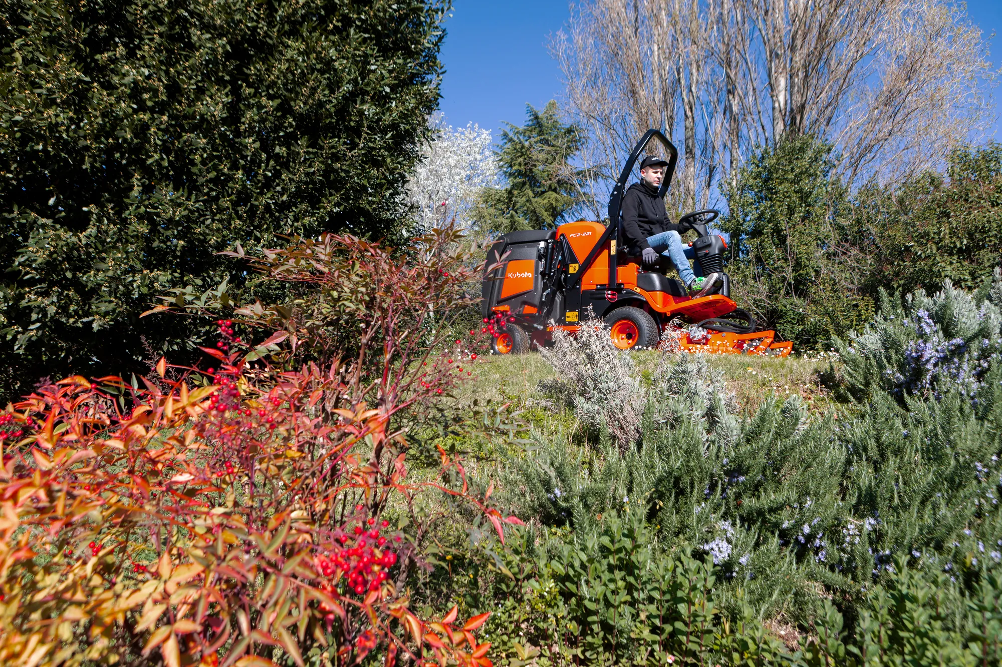 The mower's rollover protection system (ROPS) ensures a safe working environment.