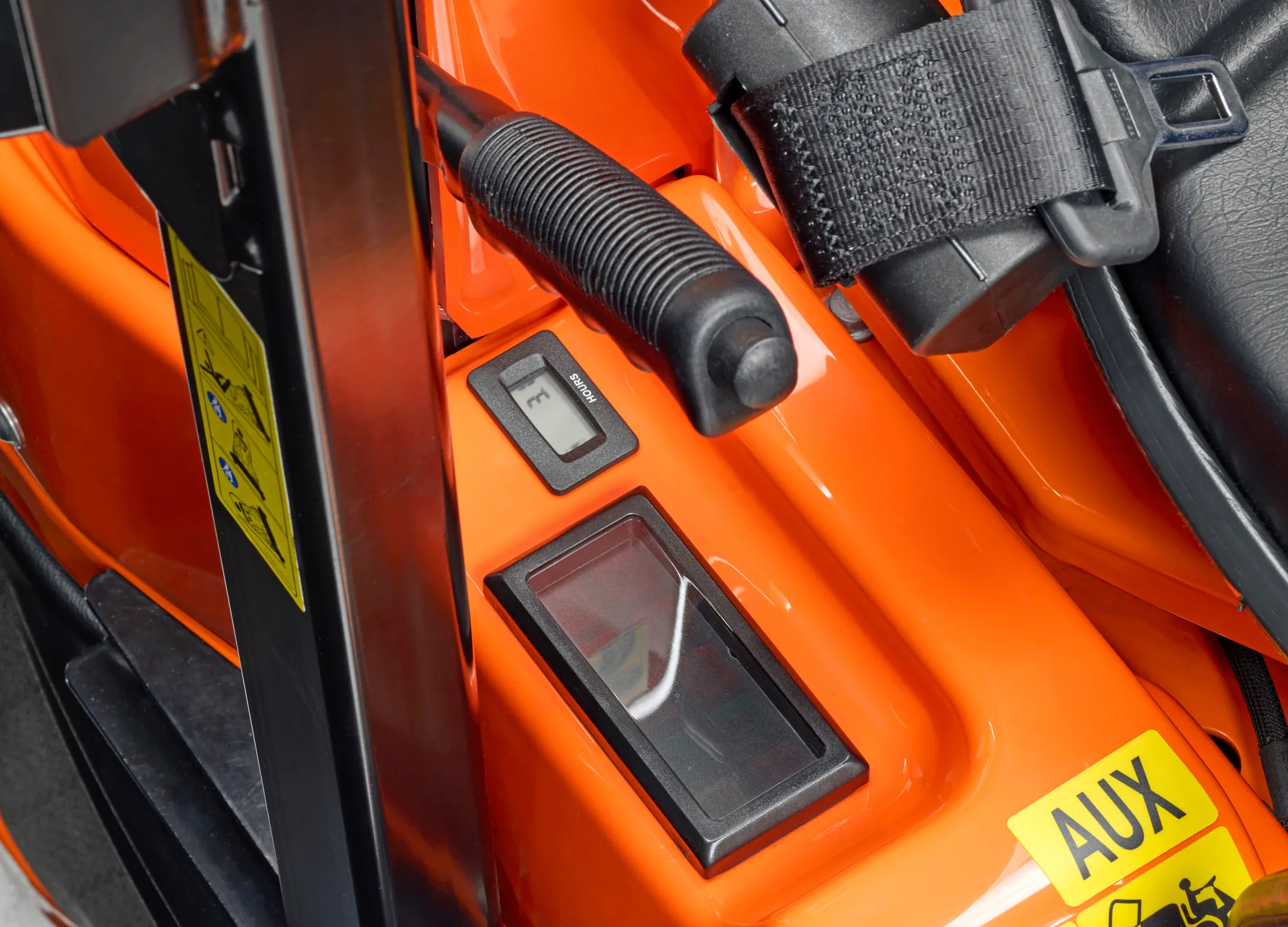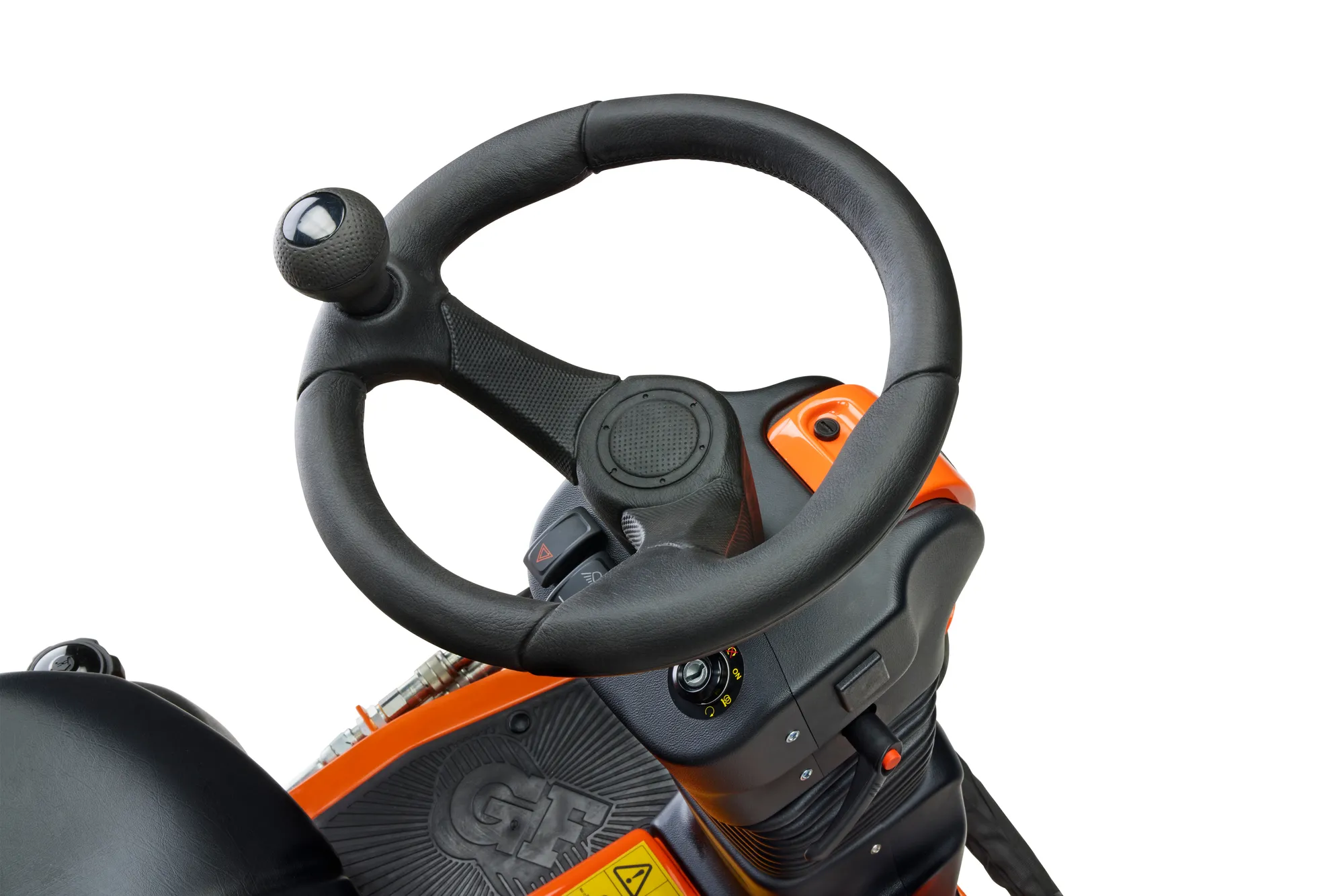 Permanent 4-wheel drive also ensures that most types of terrain can be operated in comfort and safety. Simply press the forward part of the pedal and the HST transmission will take you to your required speed.