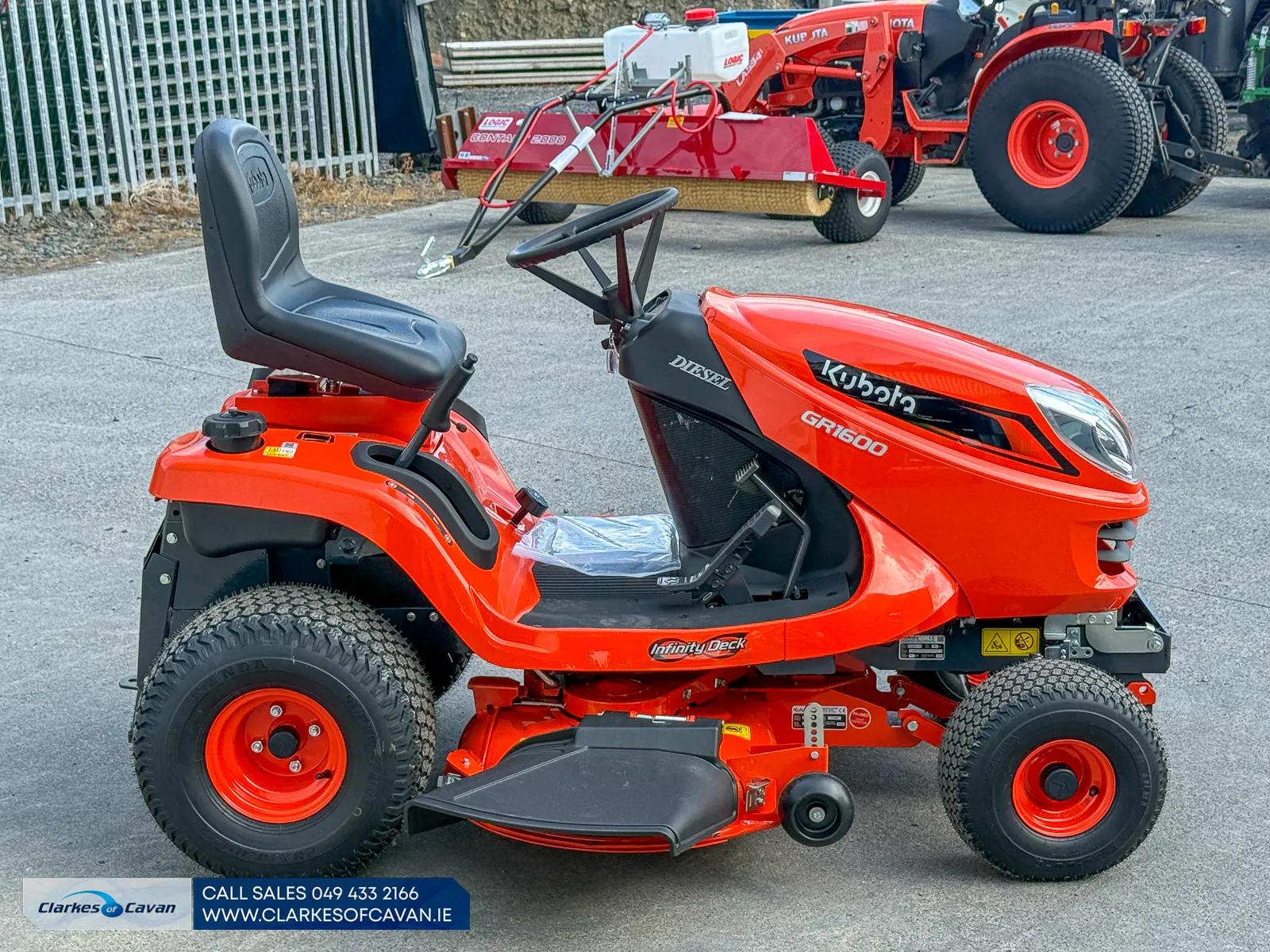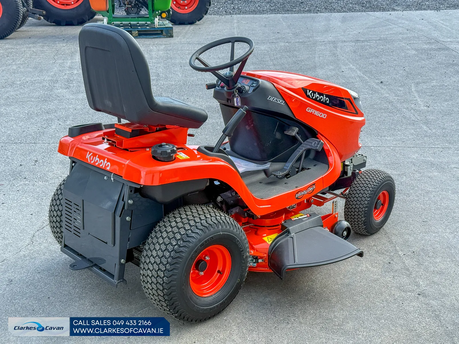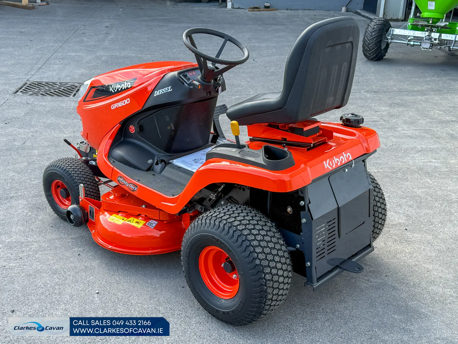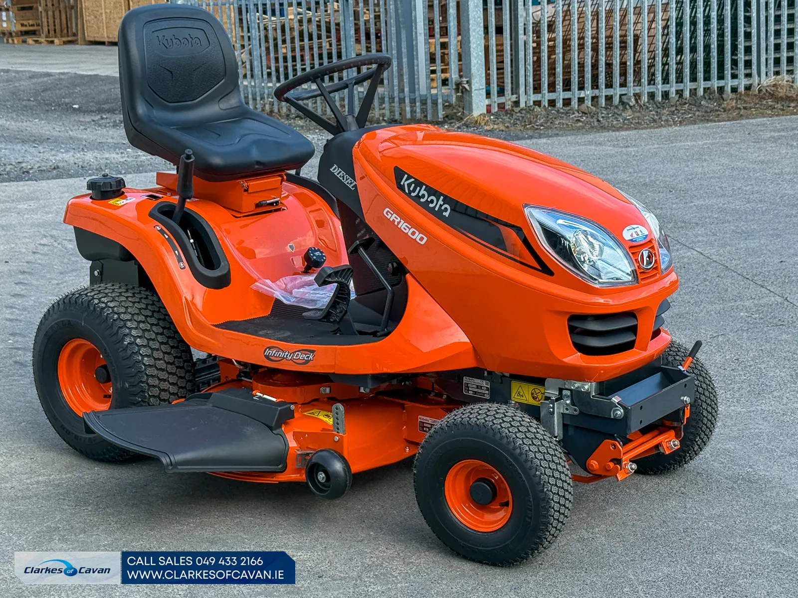 An entry level diesel ride-on lawnmower, Kubota GR1600ID, best for domestic use. GR1600ID has 42 inch infinity cutter deck and can side discharge, mulch or collect. Easy control speed and direction with its Kubota's hydrostatic transmission. Most importantly, it makes easy to look after that the diesel engine requires no special maintenance in the off season.
