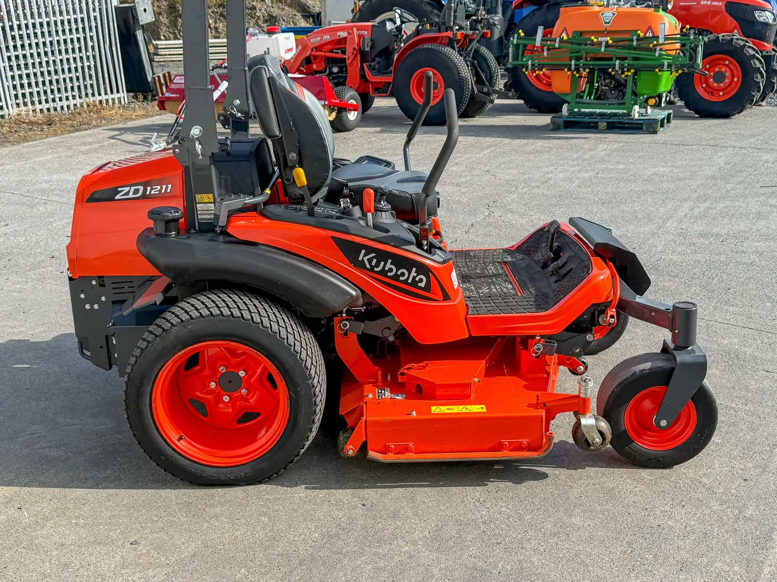 The ZD series provides comfort and fast work. With a powerful 26 HP diesel engine and high capacity HST transmission, it answers all the needs of professional users. ZD1211 is a 3 blades, 140mm deep deck featuring a flat design and Kubota's unique baffling system that forces grass to be discharged evenly onto the ground. Enjoy the best of ride-on-mowers with its turn on a dime performance!