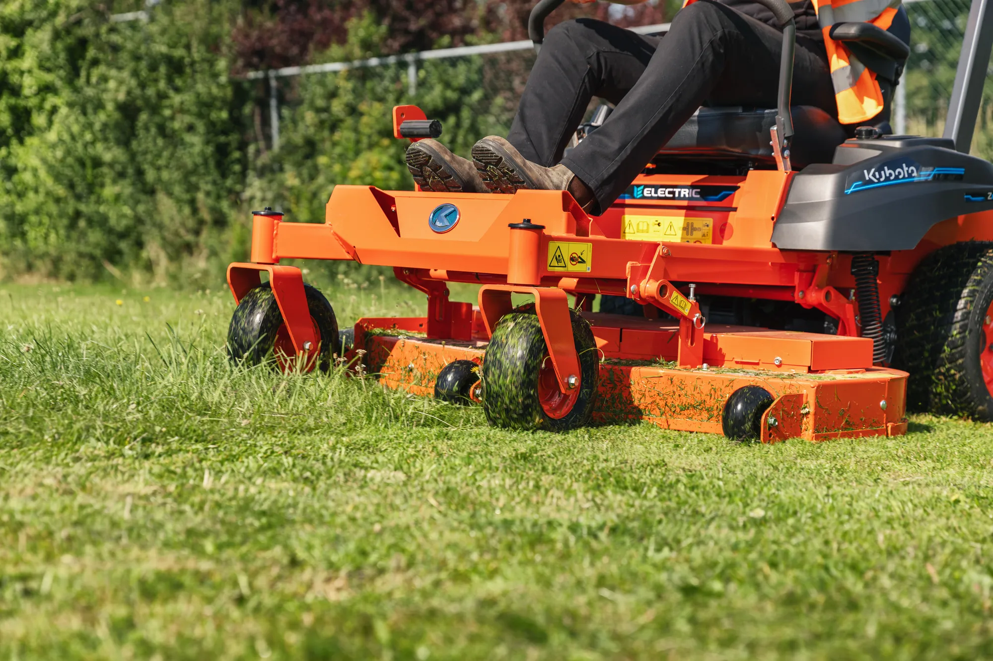 The Ze Series is Kubota’s first fully electric ride-on mower. The simple fact that these machines will spend the majority of their working lives in an urban environment means zero emissions and low noise levels are paramount.