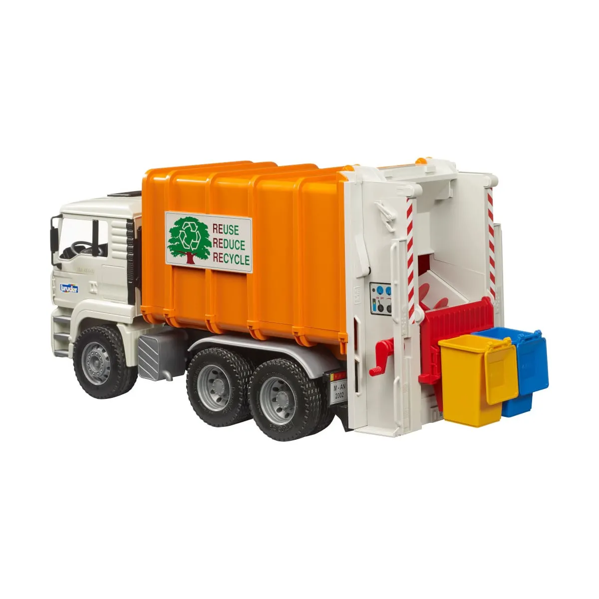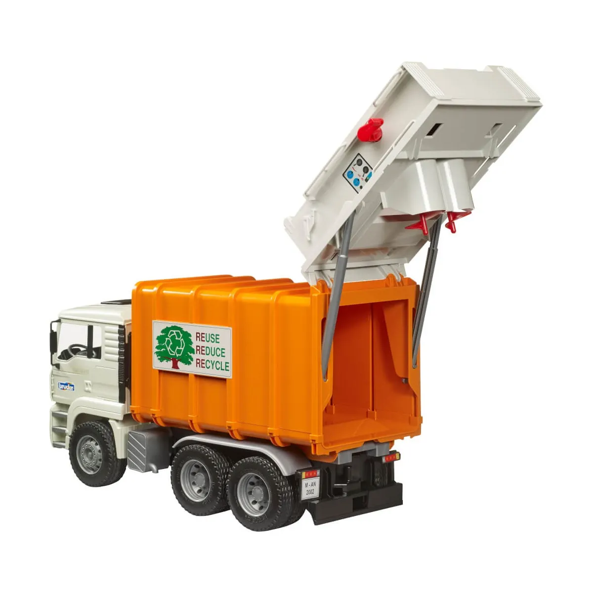 The Bruder MAN TGA Garbage Truck brings waste management to life in detailed 1:16 scale. Featuring a modern rear-loading design, functioning tailgate, and a tilting driver’s cab, this high-quality toy replicates real-world garbage trucks with incredible accuracy. It’s ideal for imaginative outdoor and indoor play.