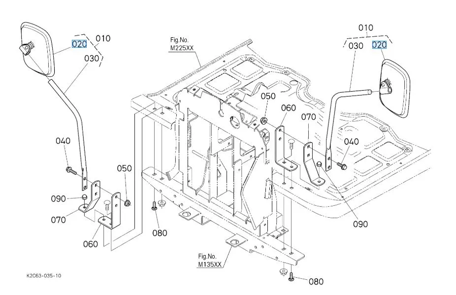 Kubota K2563‑57513 MIRROR | Genuine Rear View Option for G23‑LD