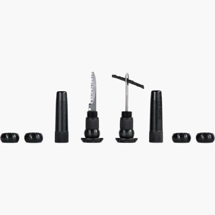 When a puncture strikes just too big and gnarly to seal, the Muc-Off Stealth Tubeless Puncture Plug ultimate backup tool that’s cleverly stored inside your bar ends! The expanding silica plugs included cover most MTB, road and gravel handle bar sizes and the premium CNC Machined Aluminium bar ends are available in 12 anodised colours to match your ride. Each lightweight and durable set contains everything you need to get back riding when you’re stuck battling a hole that’s just not sealing: a stainless steel 2-in-1 puncture plug reamer tool, a variety of different sized tyre worms and a trimming knife.