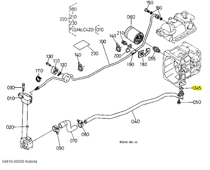 The Kubota O-Ring 04816-00200 is a critical sealing component that prevents leaks in hydraulic systems, transmission cases, PTO gear shift levers, and drivetrain assemblies. As an OEM-approved part, it is engineered for a perfect fit and long-lasting durability, ensuring the efficiency and longevity of Kubota machinery.