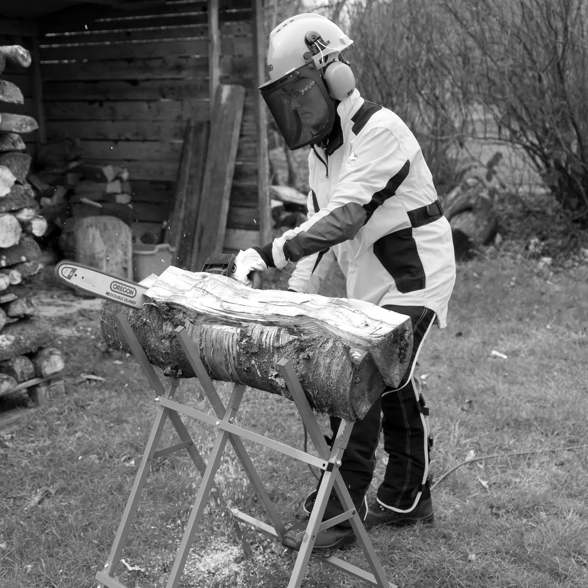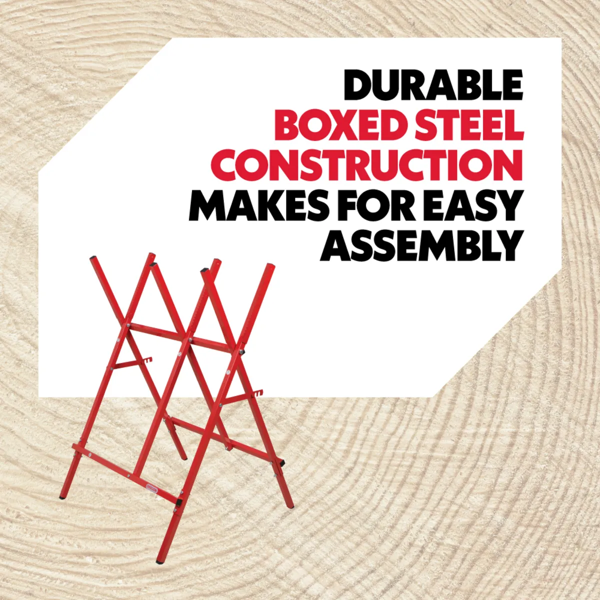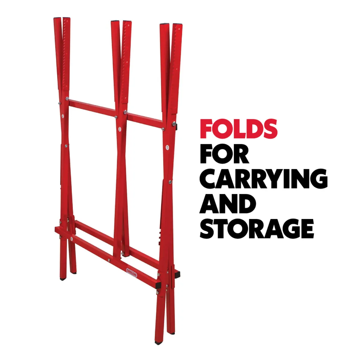 Oregon's Steel Log Saw Horse is a lightweight, portable log stand designed for when you're cutting logs with chainsaws.The sturdy yet foldable design features teeth to keep wood stable when cutting, making logging simpler and safer. The boxed steel construction and easy to assemble design makes it ideal to carry and move around on site. It is easy to mount, with full instructions included for assembly and usage.The steel log saw horse has a 27cm log capacity, with a maximum load of 80kg.