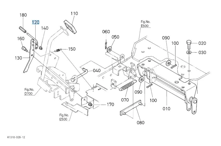 The Kubota Parking Lock Pedal K1211-43210 is a genuine OEM part designed to work within the brake pedal assembly. This critical component ensures the parking brake locks securely, providing safe operation when your Kubota mower or tractor is stationary.
