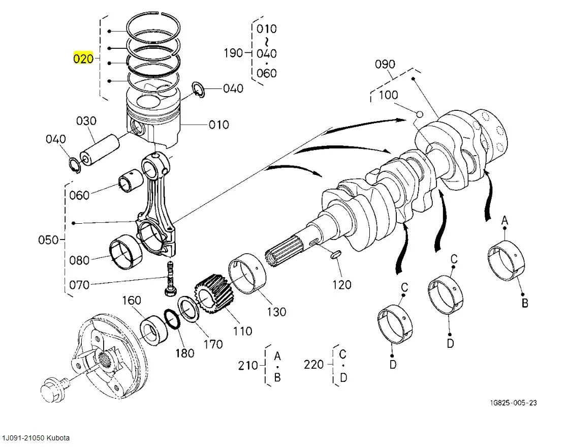 The 1J091-21050 Piston Ring Assembly is compatible with the following Kubota machines: