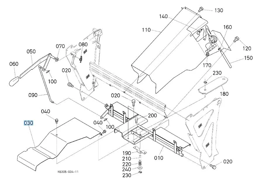 The Kubota K6305-63874 is a genuine duct plate designed for the lower grass ejection system in GR2100 and GR2120 ride-on mowers, as well as the GCK450GREC2 mower deck. This critical component forms part of the ejection duct, guiding grass clippings from the mower deck to the collection system. Engineered for airflow efficiency and structural reliability, it ensures your mower operates cleanly and effectively.