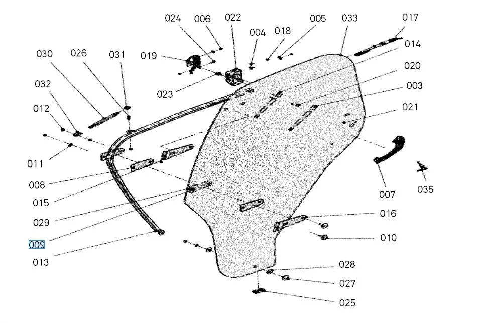 This product covers all essential components for refurbishing or upgrading the cab doors on a Kubota RTV Mauser T‑900. It includes: