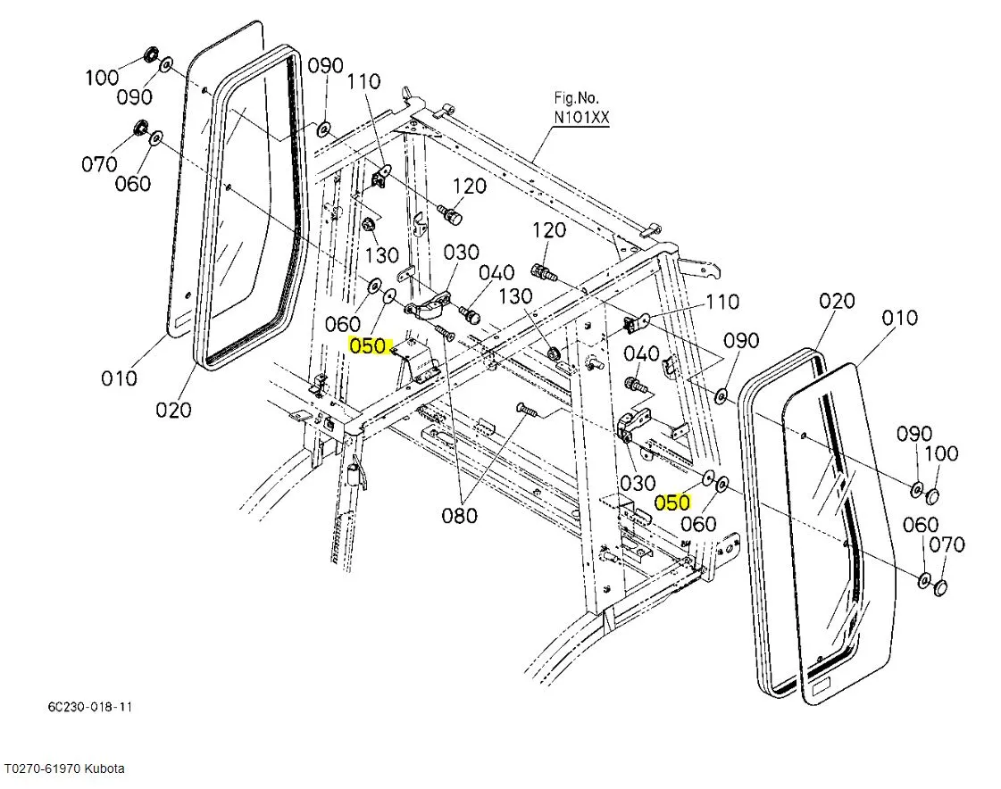 The Kubota Plate T0270-61970 is critical for maintaining the integrity of cabin glass installations in tractors and cab models. It is an ideal replacement for worn or damaged plates to ensure continued safety and performance.