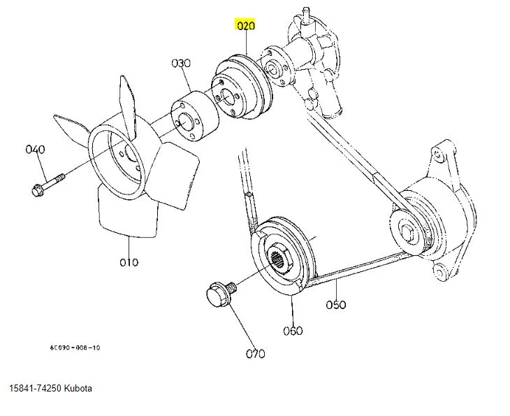 The Kubota fan pulley 15841-74250 is a vital part of the engine's cooling system, responsible for transferring power from the engine to the cooling fan. Precision-engineered to OEM standards, this pulley ensures reliable operation and maintains optimal engine temperature during use.