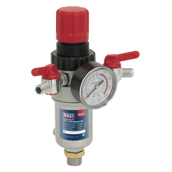 The Heavy-Duty Air Filter/Regulator - SA2FR ensures precise airflow control and effective filtration for compressed air systems. Made with a durable aluminum alloy valve assembly, it features an integral filter and water trap, making it ideal for maintaining clean, regulated air pressure in various industrial applications.