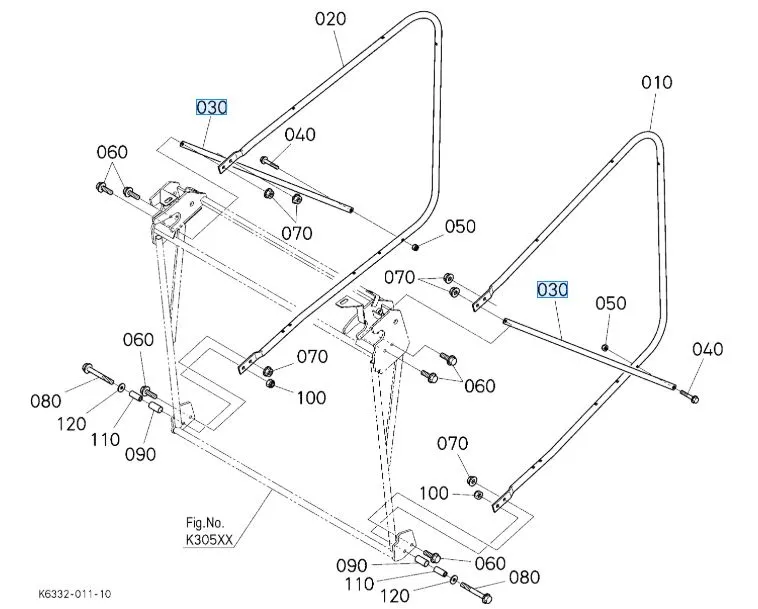 The Kubota K6312-63590 bag rod is a structural component designed to secure and support the grass bag in GCK-G23LD grass collection systems. Mounted within the side frame (K31001), this rod ensures proper alignment and stability for the collection bag, especially during heavy mowing operations.