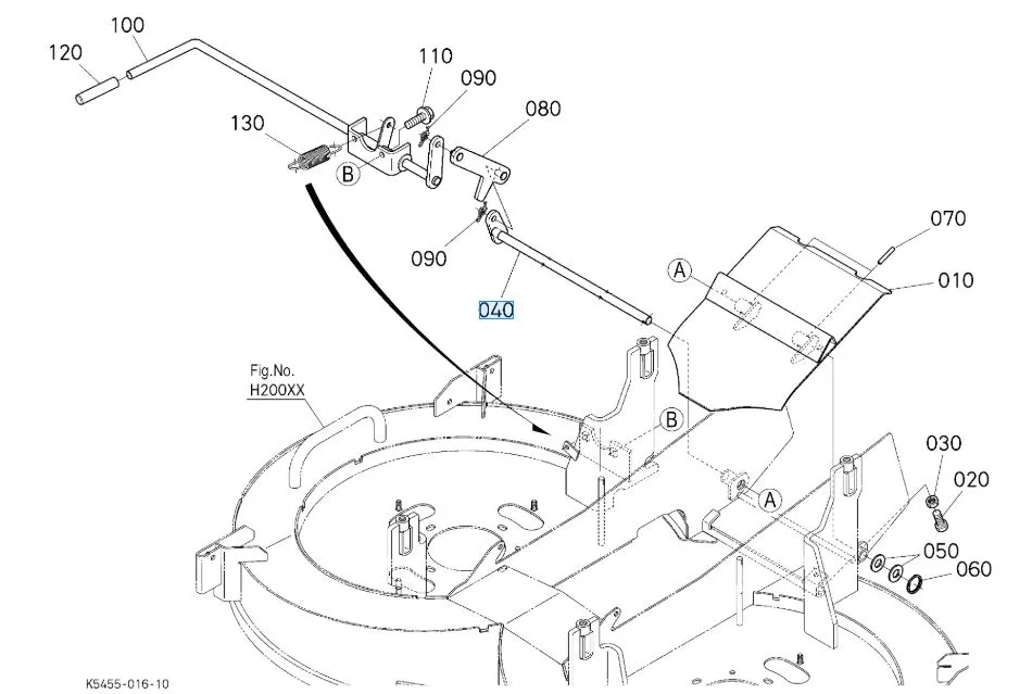 The rod connects the jump plate mechanism to the deck linkage, enabling movement when the deck needs to shift or rise over terrain irregularities. As a genuine Kubota part, K5455‑98120 ensures proper fit, durability, and correct motion.