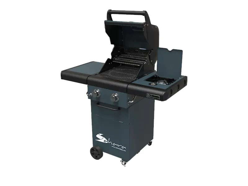 Grill, roast and boil with this stylish 2 burner gas barbecue with an integrated side burner.