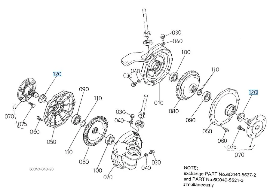 The T0430-57340 Kubota oil seal is a high-quality OEM component designed to maintain a secure seal in the front axle assemblies of Kubota compact tractors. Positioned within the axle housing, this seal prevents gear oil leakage and protects internal components from dirt, water, and other contaminants.