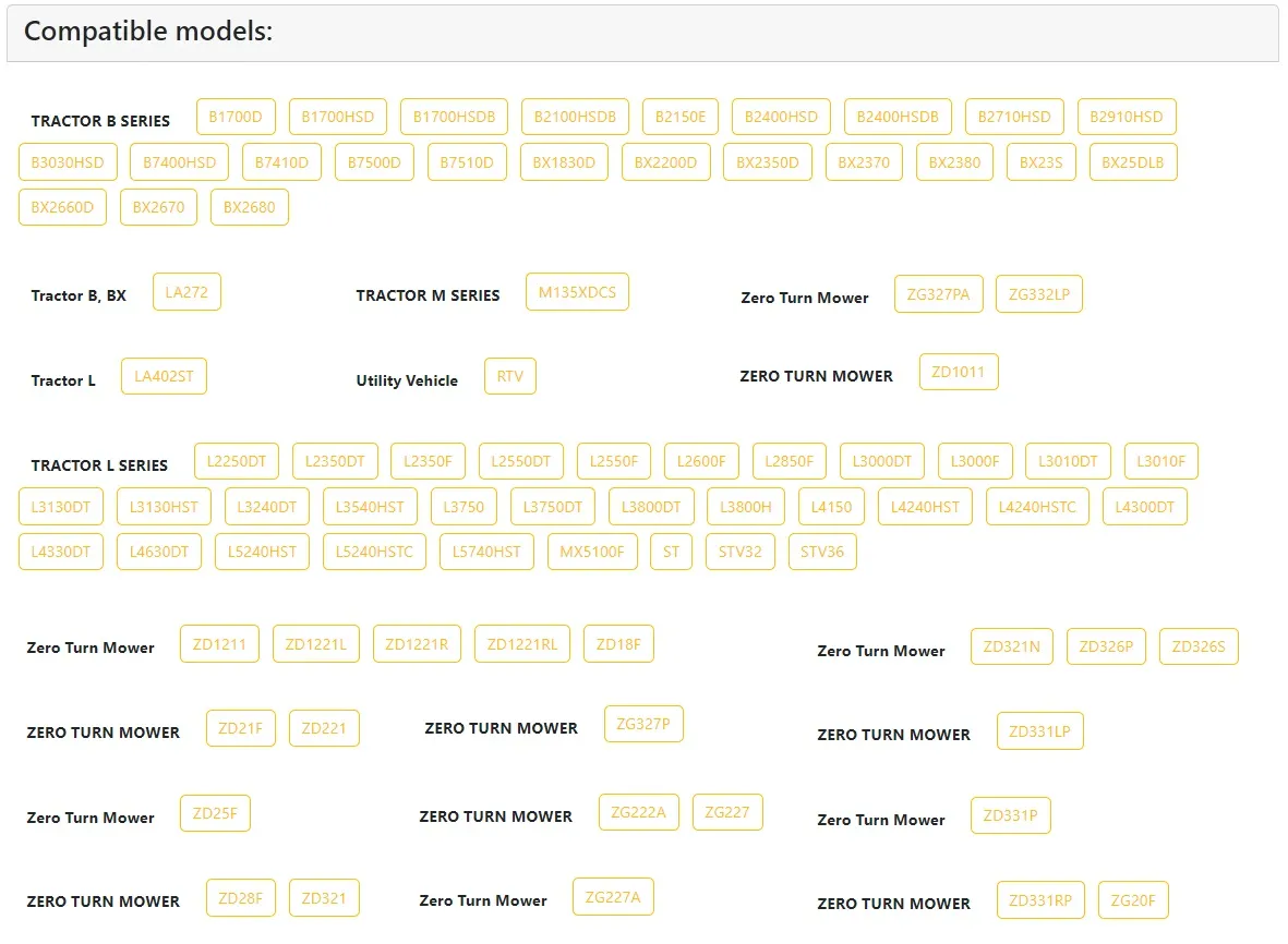 Compatible Kubota Models: