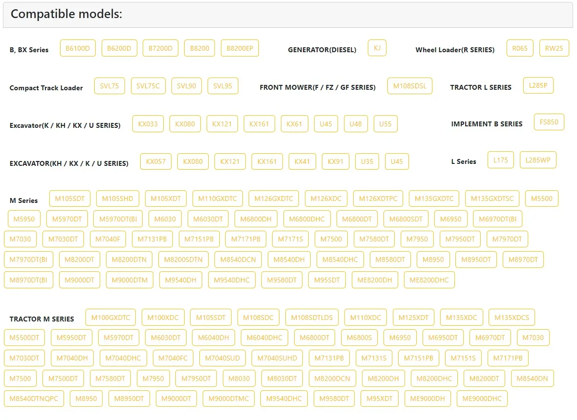 Compatible Kubota Models: