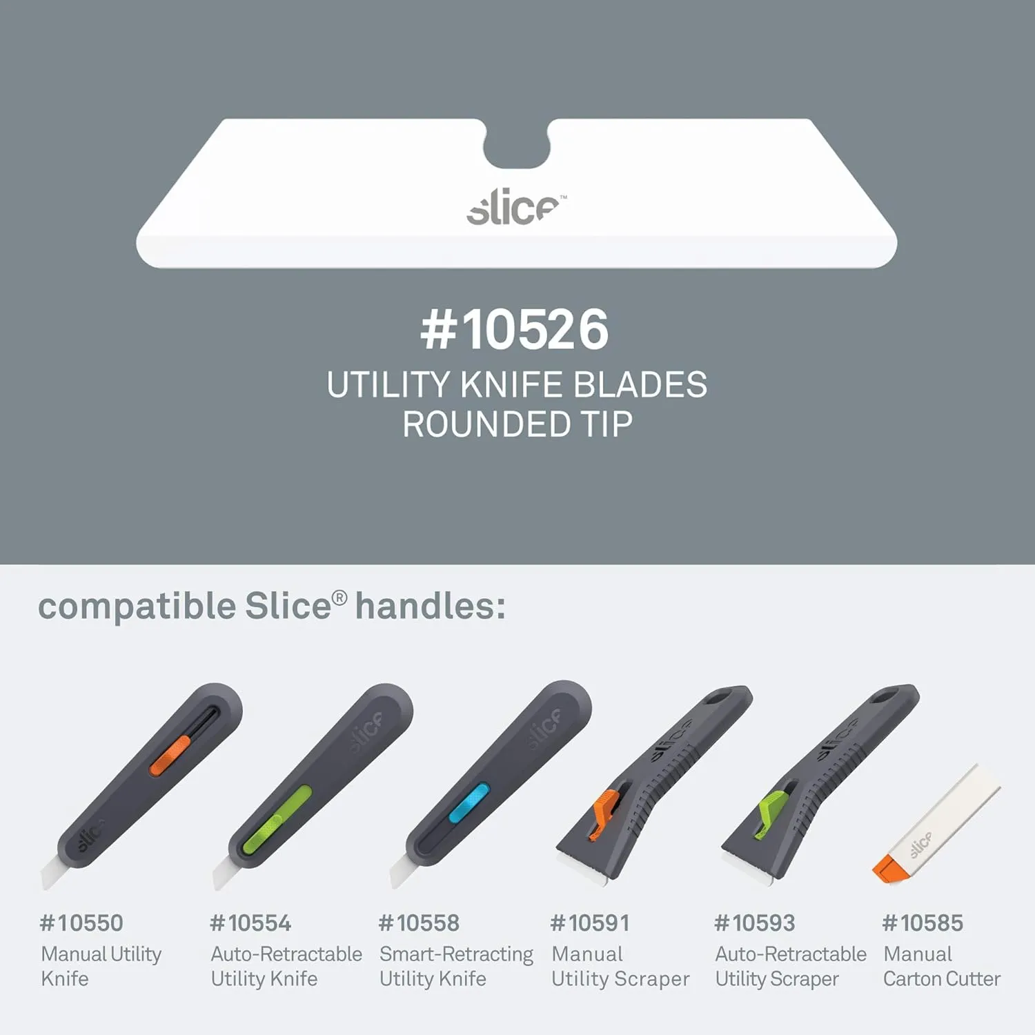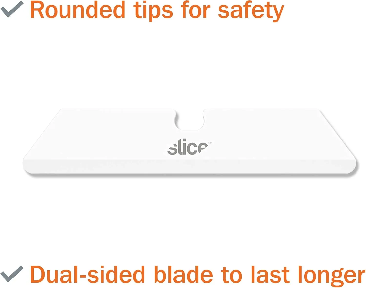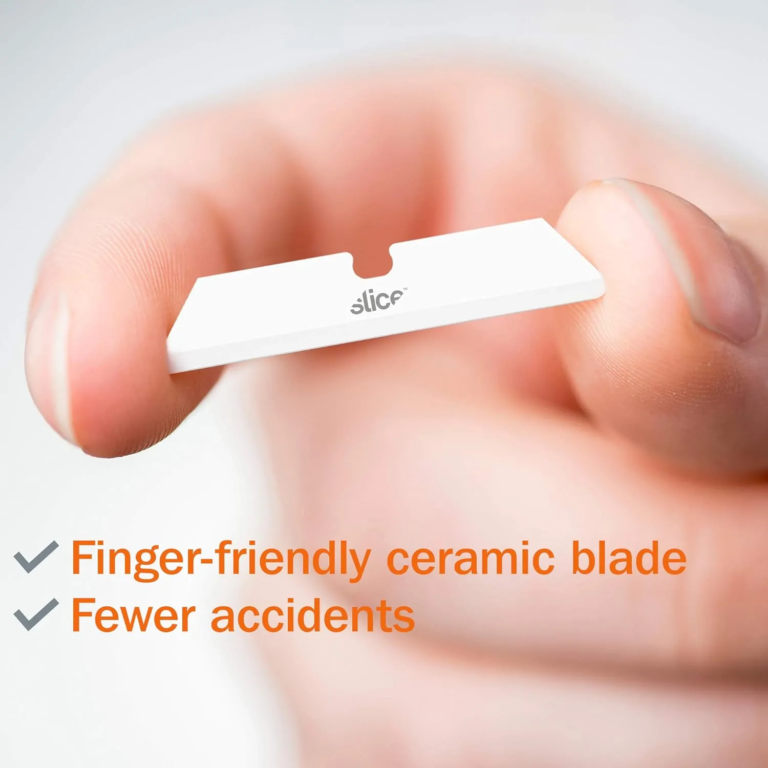 The Slice 10526 blades are precision-engineered ceramic replacement blades designed for use with Slice’s range of retractable and folding utility knives. Made from zirconium oxide, these blades are almost as hard as diamonds and last up to 11x longer than traditional steel blades, while remaining completely rust-free.