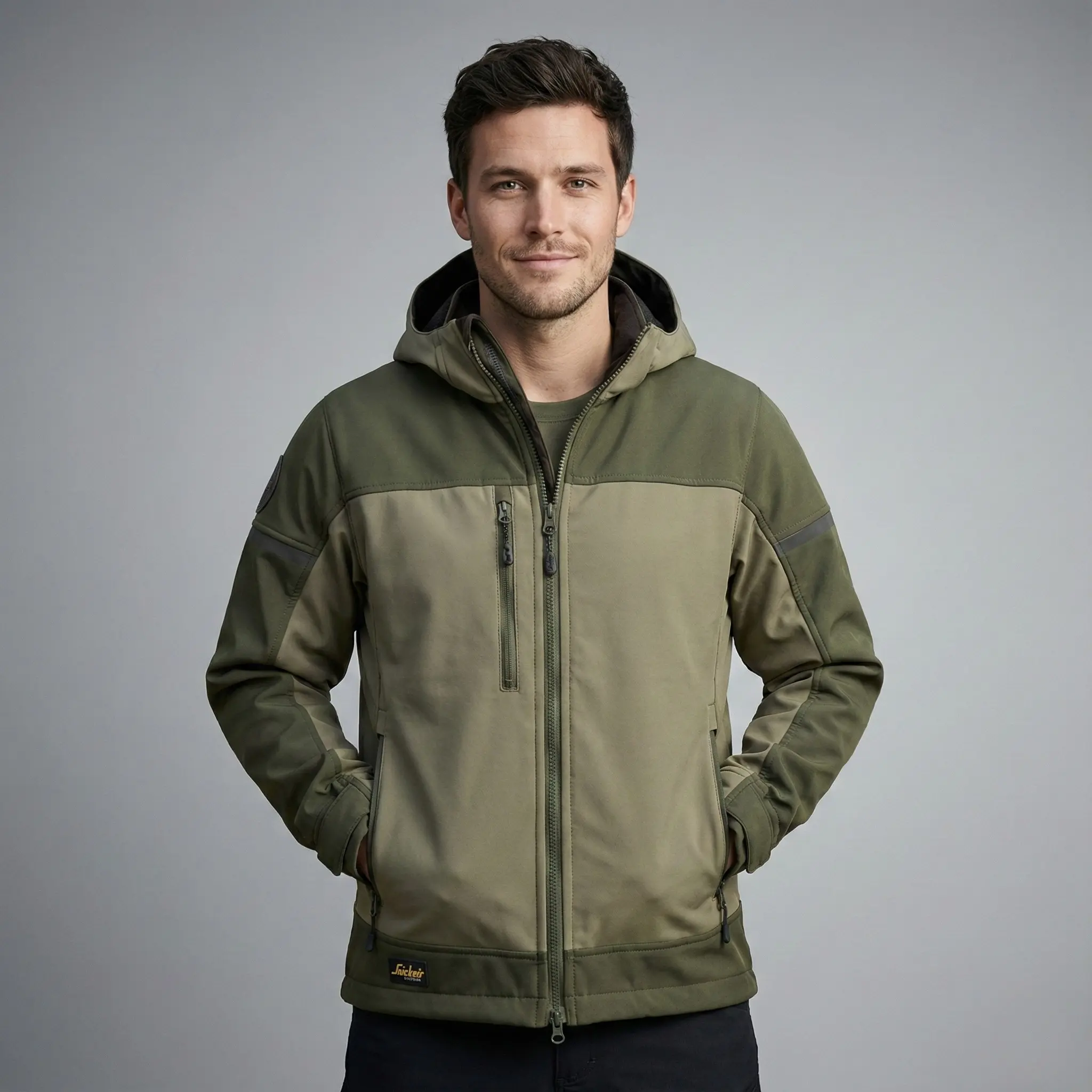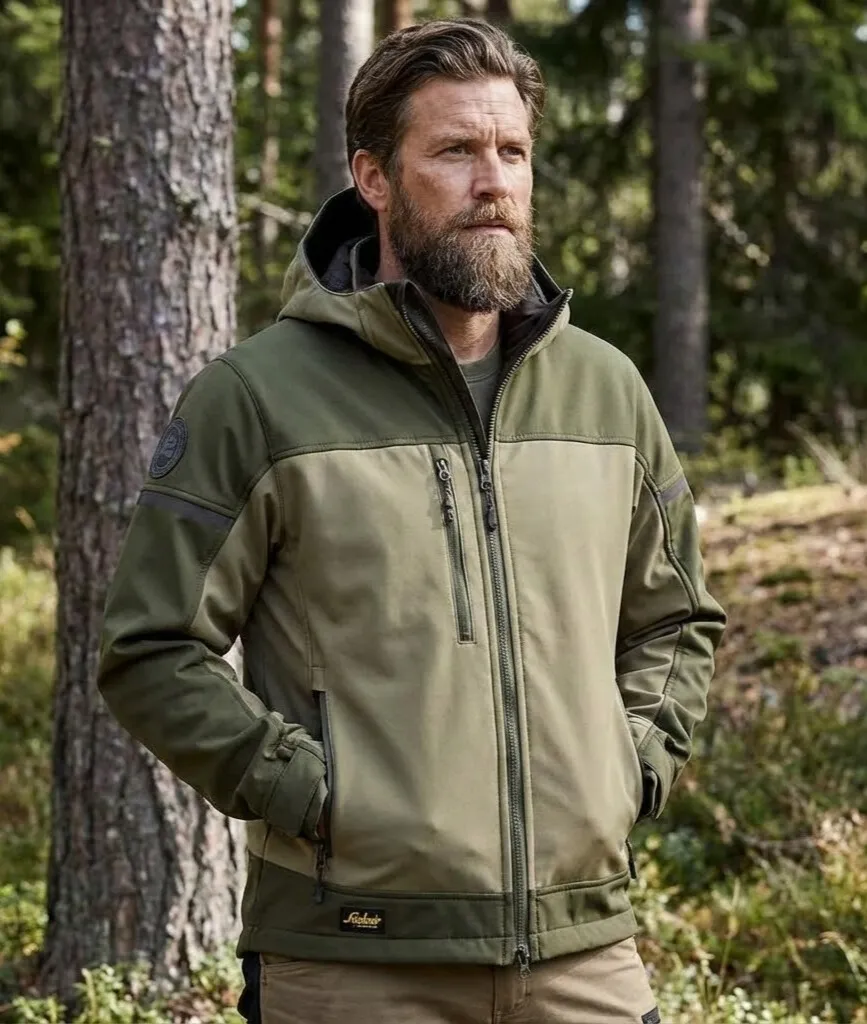 Snickers 1226 AllroundWork Hooded Softshell Stretch Jacket Khaki Green