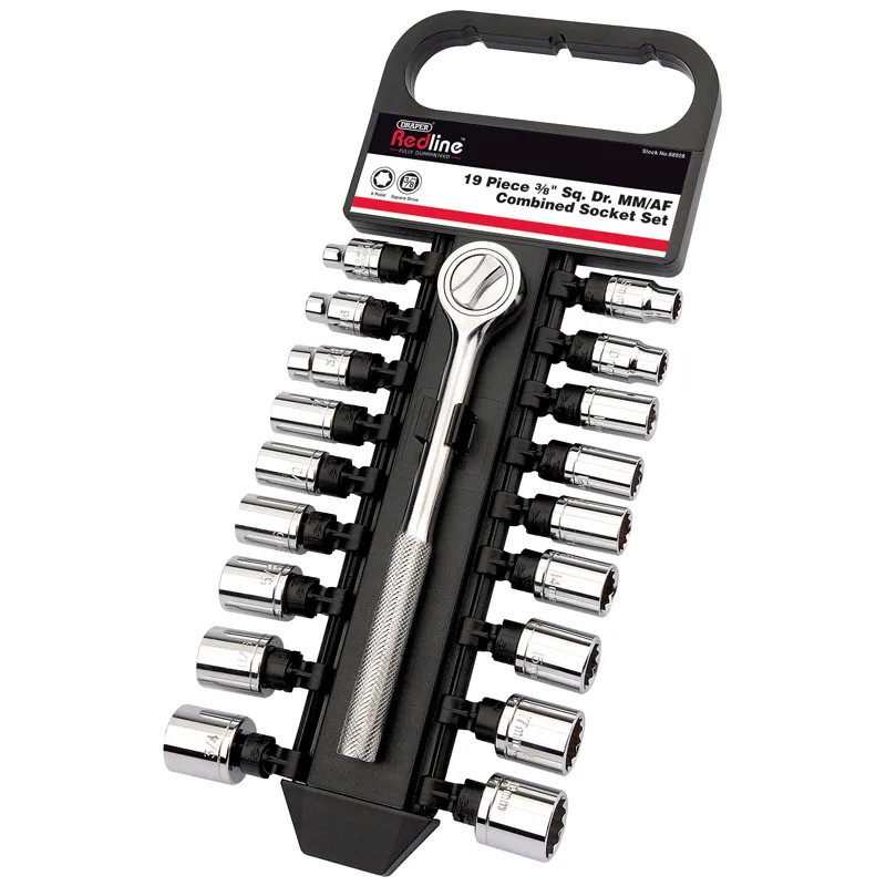 Draper MM/AF Combined Socket Set, 3/8" Sq, Dr, (19 Piece)