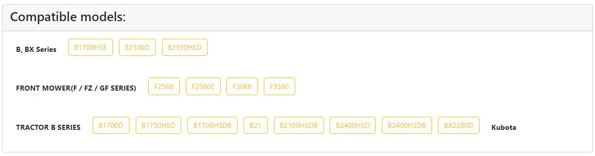 • Tractors: B1700D, B2100D, B2400HSD, B21, BX2200D