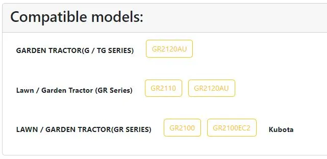 Compatible Kubota Models: