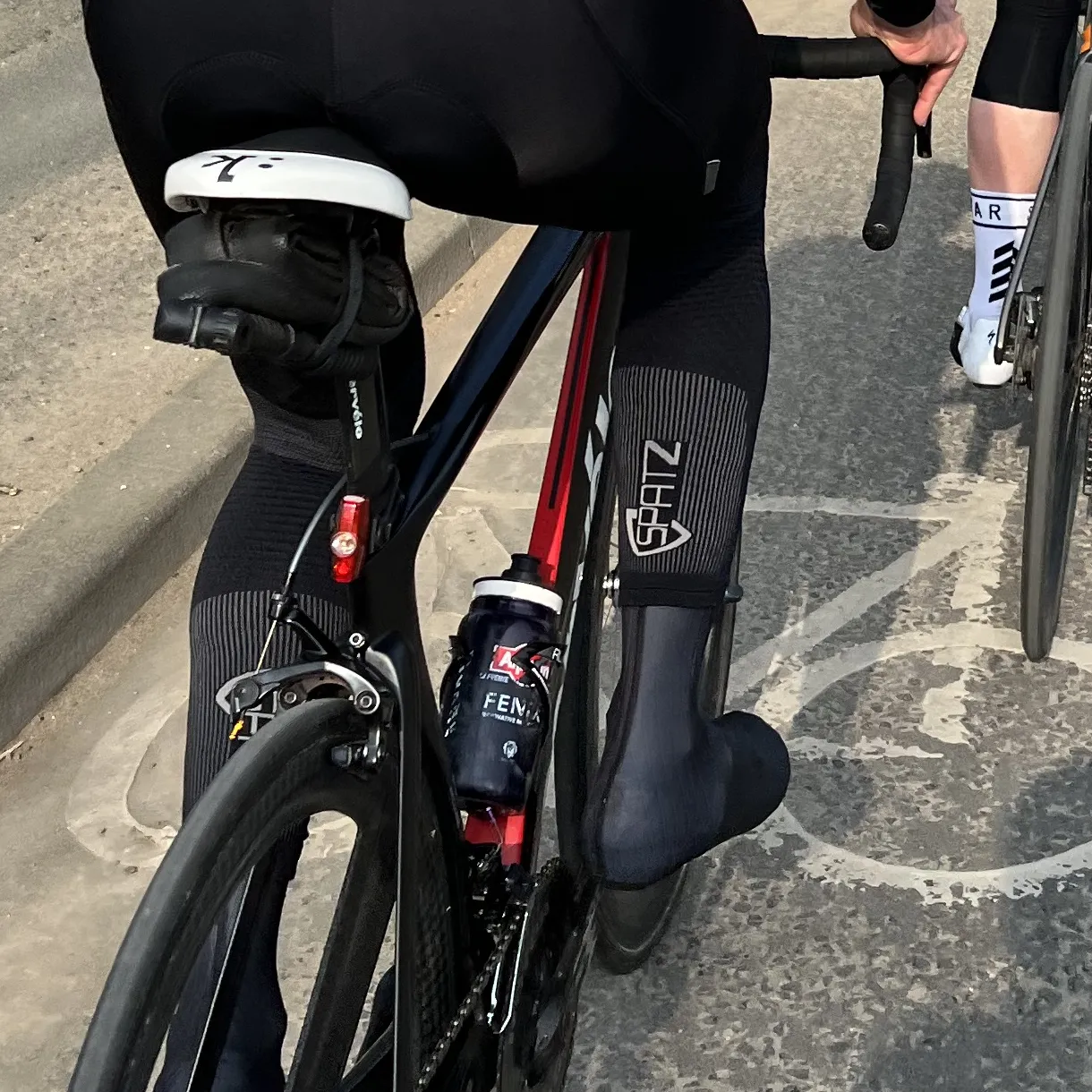 Spatz "Burnr" Leg Warmers, the ultimate 4-season cycling accessory engineered for maximum performance. These leg warmers redefine comfort with their seamless construction, eliminating bulky zippers and unnecessary compression. Each panel is intricately designed to provide warmth, support, and aerodynamics, featuring varying weaves and textures. The inclusion of subtle silicone grippers ensures they stay securely in place, making them ideal for any weather condition. Experience the perfect blend of warmth, speed, and comfort with the Spatz "Burnr" leg warmers.