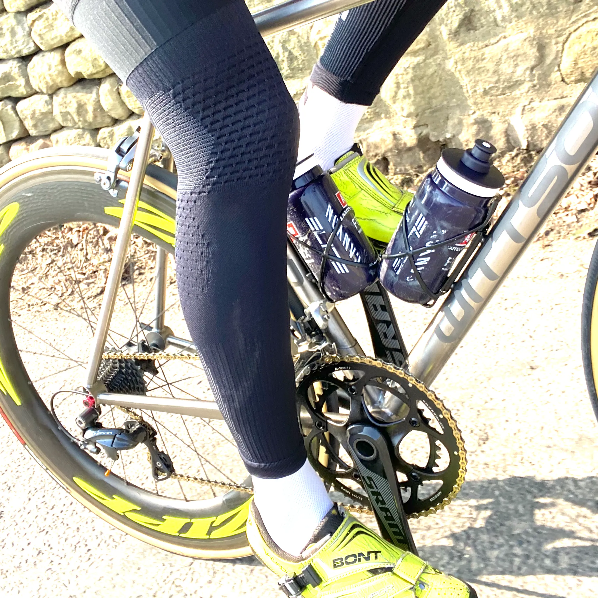 The “Burnr” leg warmers are incredibly comfortable, warm, and fast drying with the added advantage of a sculpted weave which seeks out any aerodynamic advantage.
