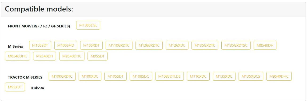 Wide Compatibility: Fits a variety of Kubota M-series models, supporting multiple configurations.