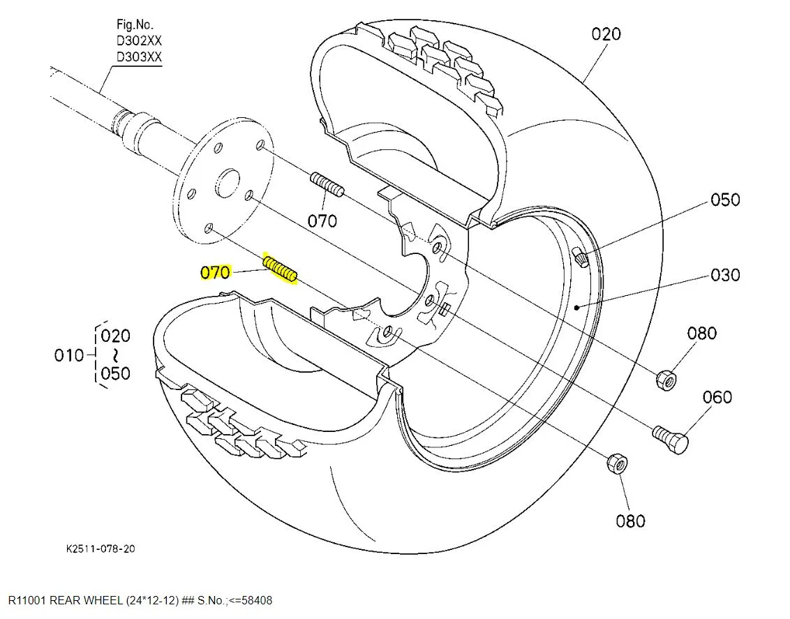 Provides a secure connection for rear wheels on Kubota tractors and mowers.