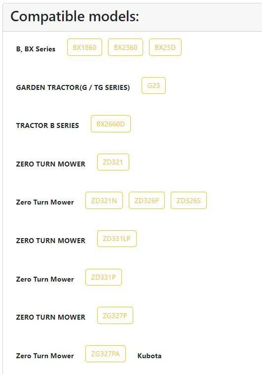 This wheel stud is compatible with the following Kubota tractor and mower models: