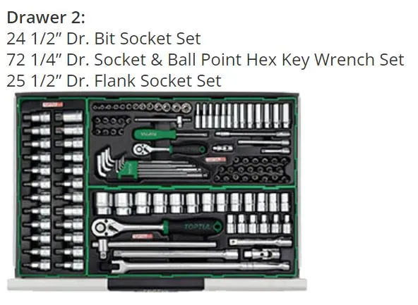 This Toptul 320Pc Tool Trolley is designed to withstand the demands of a busy workshop or garage, providing the reliability and flexibility you need for efficient tool management.
