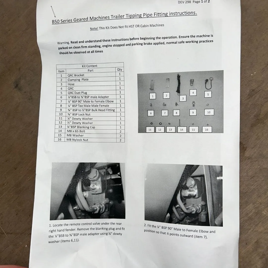 Trailer Tip Pipe Kit Kubota  B2/B50