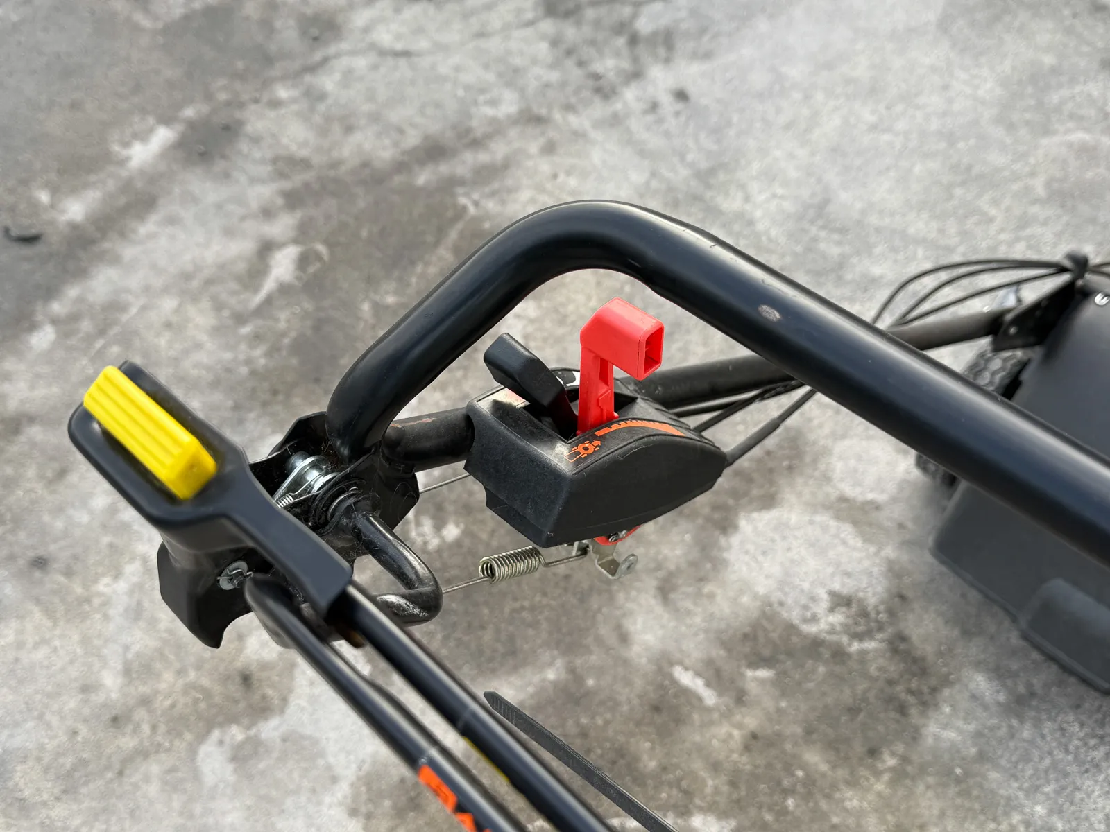 With the HRX you can easily adjust the cutting height of your grass. Simply pressing the button at the side allows you to have precise control of lowering or raising the deck evenly.