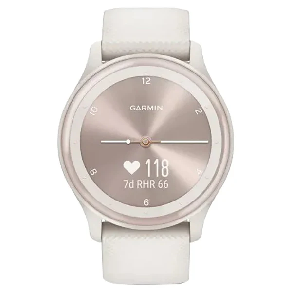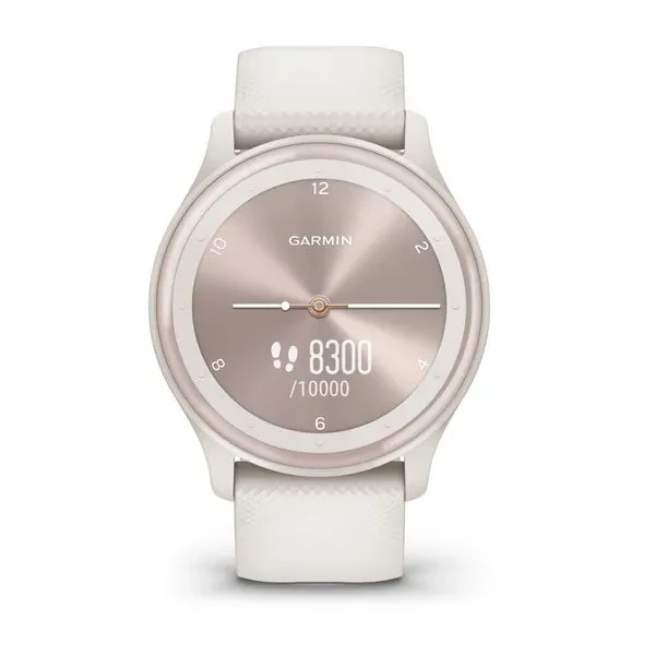 The Garmin Vivomove Sport in Ivory is a beautifully crafted hybrid smartwatch for women that offers the timeless look of a classic watch, fused with the smart features you need to manage your day and monitor your health.
