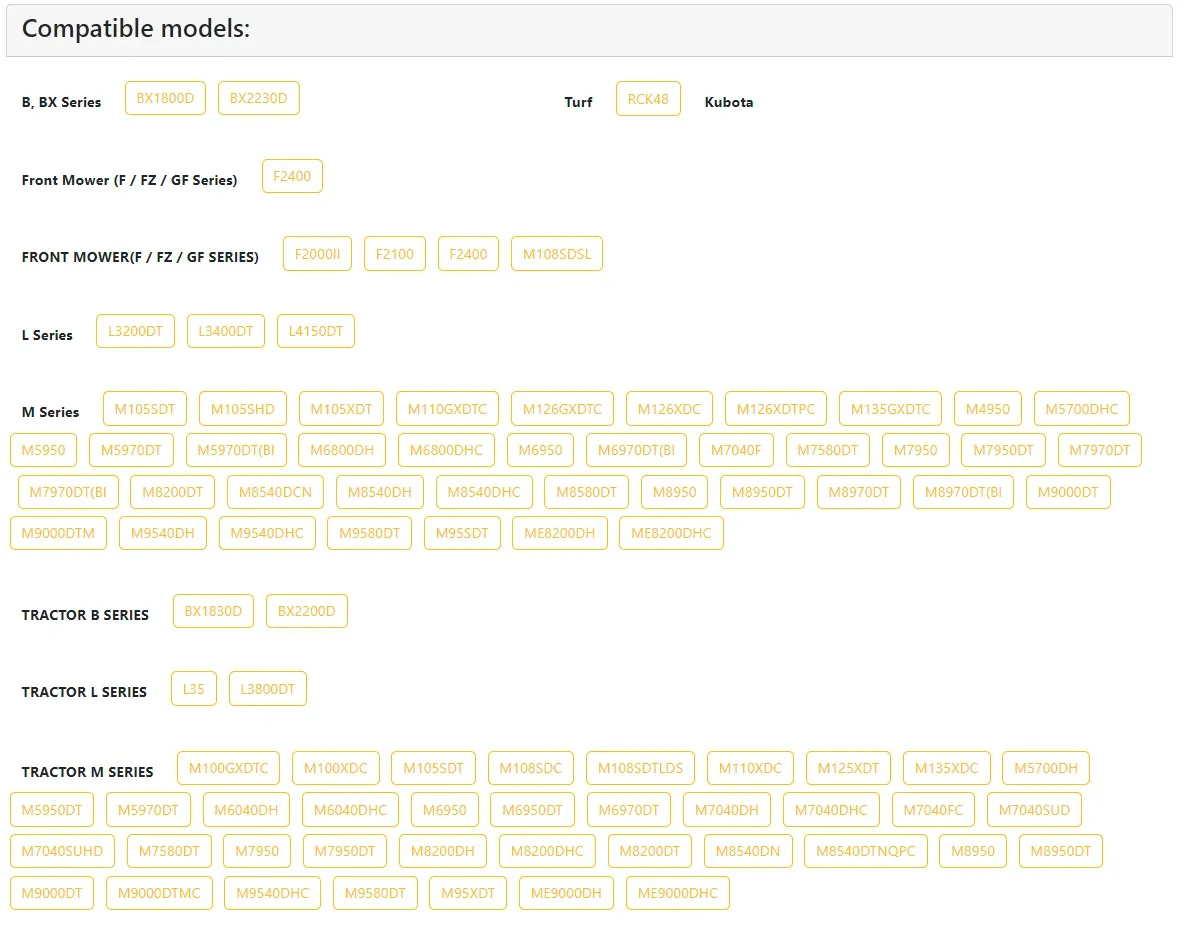 The 04717-01400 Washer Seal is compatible with an extensive list of Kubota equipment, including but not limited to: