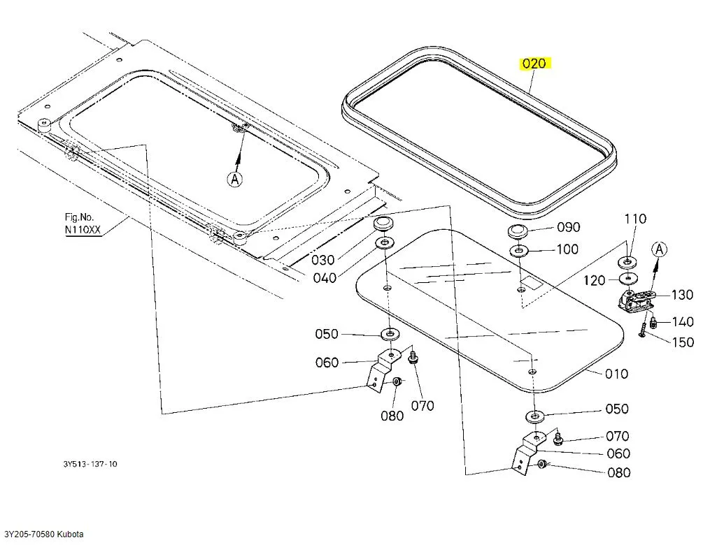 The Kubota 3Y205-70580 Weatherstrip is an authentic OEM replacement seal for the sun roof on select Kubota tractors. Designed for a precise fit, this weatherstrip ensures a tight seal that prevents water leaks, wind intrusion, and dust from entering the cab.